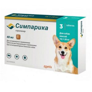 СИМПАРИКА Таблетка 40 мг для защиты от блох и клещей для собак весом 10,1-20 кг, за 1 таблетку.