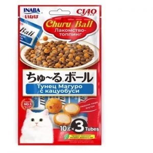 Inaba Ciao Churu Ball Лакомство-топпинг дЛЯ кошек с тунцом Магуро с кацуобуси, УПАК.3*10г