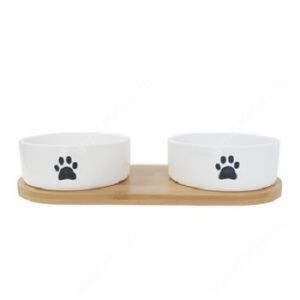Миска Mr.Kranch Bamboo керамическая белая двойная на бамбуковой подставке 2х350 мл