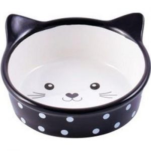 Миска Mr.Kranch керамическая для кошек Мордочка кошки 250 мл черная в горошек