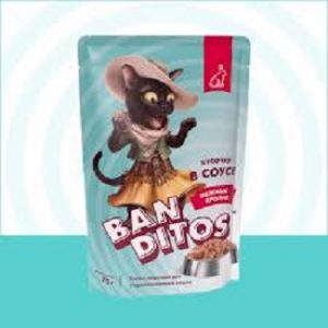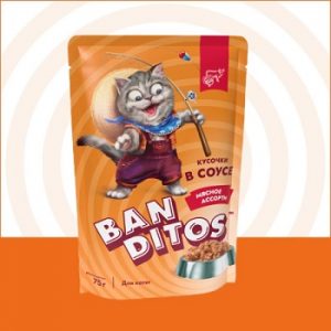 Banditos влажный корм для котят мясное ассорти кусочки в соусе, 75гр.