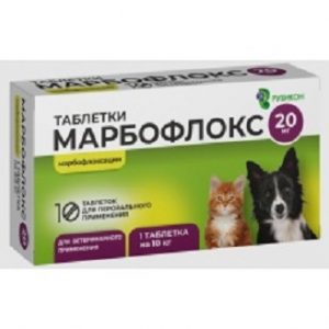 МАРБОФЛОКС 20 мг (Марбофлоксацин 20 мг) Рубикон (аналог Марфлоксин) цена за 1 таблетку