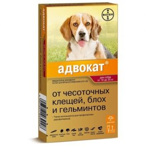 АДВОКАТ капли на холку от паразитов для собак весом от 10 до25 кг, цена за 1 пипетку