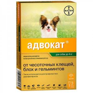 АДВОКАТ Капли на холку от внутренних и внешних паразитов для собак весом до 4 кг.