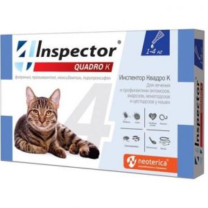Инспектор QUADRO Капли на холку от внешних и внутренних паразитов д/кошек 1-4 кг цена за 1 пипетку