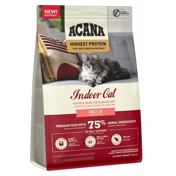 ACANA Highest Protein Indoor Cat (Курица, лосось, форель) — это беззерновой корм для кошек всех пород с птицей и рыбой (75% мяса / овощи, фрукты и травы).