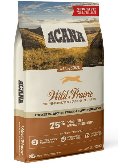 ACANA (АКАНА) WILD PRAIRIE Cat & Kitten (Птица, рыба) – это беззерновой корм для котят и кошек всех пород с птицей и рыбой. 75% мяса / 25% овощи, фрукты и травы.