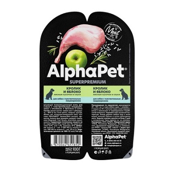 AlphaPet Superpremium Кролик и яблоко в соусе — влажный полнорационный корм для собак с чувствительным пищеварением.