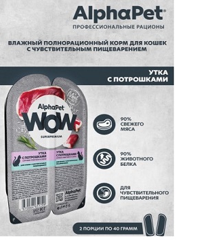 AlphaPet WOW Superpremium Утка с потрошками сочные ломтики в соусе – влажный полнорационный корм для кошек с чувствительным пищеварением сочные ломтики утки с потрошками в соусе.