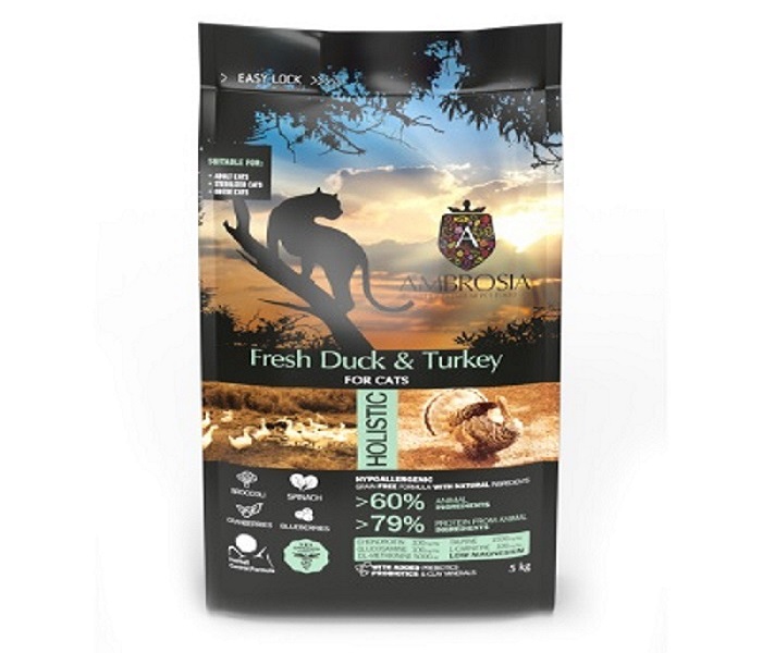 Ambrosia Sterilized Cat (Утка, индейка) – беззерновой корм для стерилизованных кошек. Подходит для взрослых, пожилых, стерилизованных и страдающих от ожирения кошек.