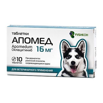 В одной таблетке Апомед 3,6 мг, Апомед 5,4 мг и Апомед 16 мг содержится соответственно 3,6 мг, 5,4 мг и 16 мг оклацитиниба (в форме оклацитиниба малеата).