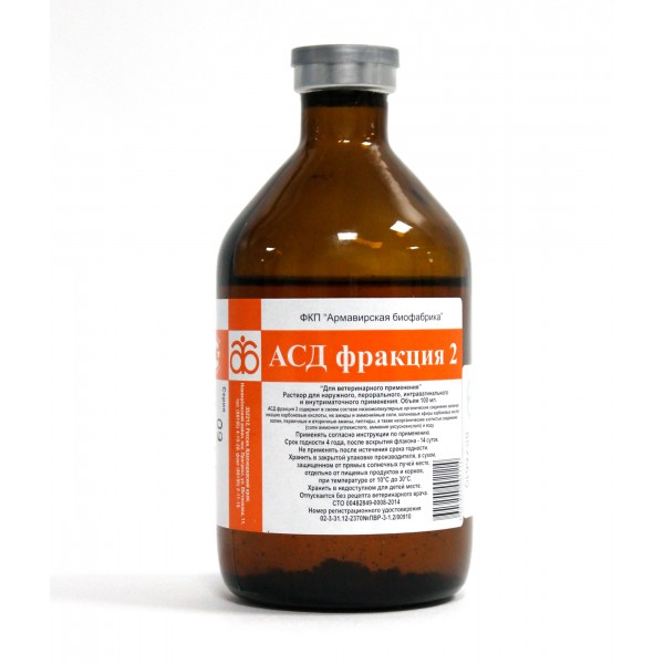 В целях повышения устойчивости организма к неблагоприятным факторам окружающей среды, увеличения привесов и снижения смертности, АСД-2Ф телятам – выпаивают с молоком или водой для поения из расчета 0,1 мл АСД-2Ф на 1 кг массы животного через день в течение 1–2 месяцев.