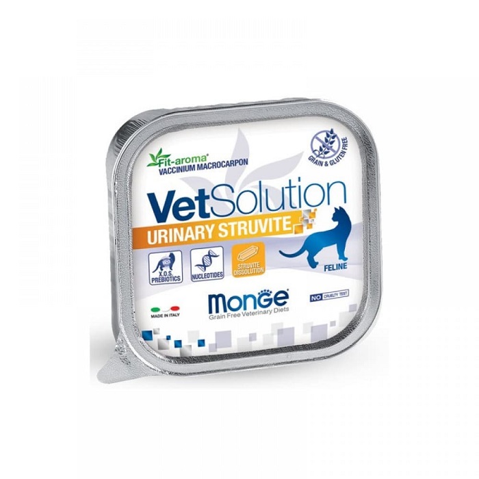 Рекомендации по кормлению: норма кормления и период применения диеты должны быть назначены ветеринарным врачом. Необходимо обеспечить свободный доступ животного к чистой, свежей воде. Рекомендуемый срок применения для растворения стерильных уролитов струвитного типа составляет от 2 до 4 недель, для растворения струвитов на фоне инфекции – до 8 недель. В период применения диеты рекомендуется проводить обследование животного (анализ мочи, рентгенография брюшной полости в боковой проекции) каждые 4 недели до полного растворения уролитов. После завершения курса лечения рационом Monge Vetsolution Urinary Struvite рекомендуется применение рациона MONGE SUPERPREMIUM CAT URINARY.