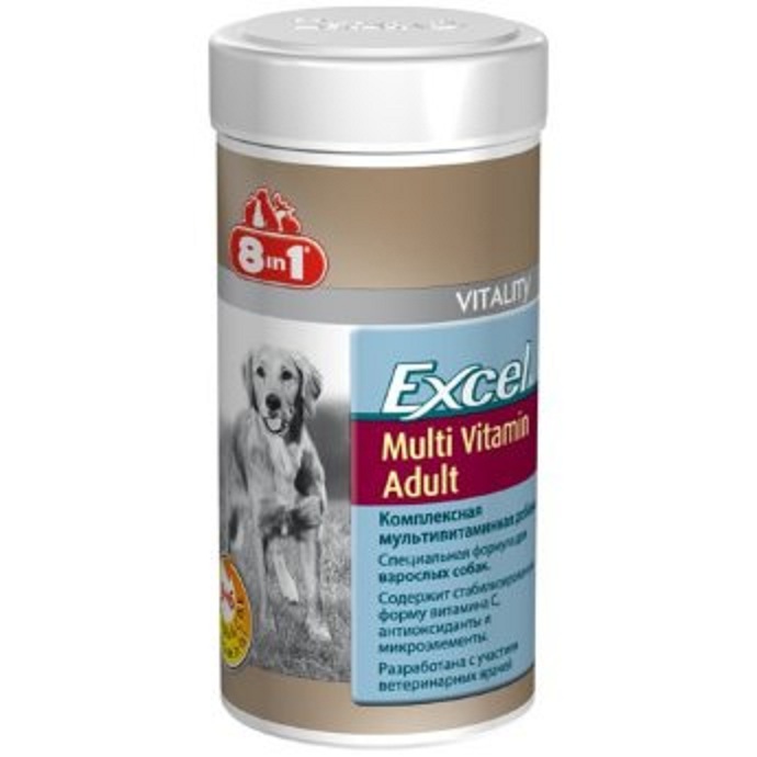 8в1 Эксель Мультивитамины для взрослых собак – мультивитаминная добавка для взрослых собак с витаминами и микроэлементами, помогает предотвратить проблемы, связанные с дефицитом питательных веществ в рационе. Содержит стабилизированную форму витамина С и другие натуральные антиоксиданты для здорового и активного образа жизни Вашего питомца.