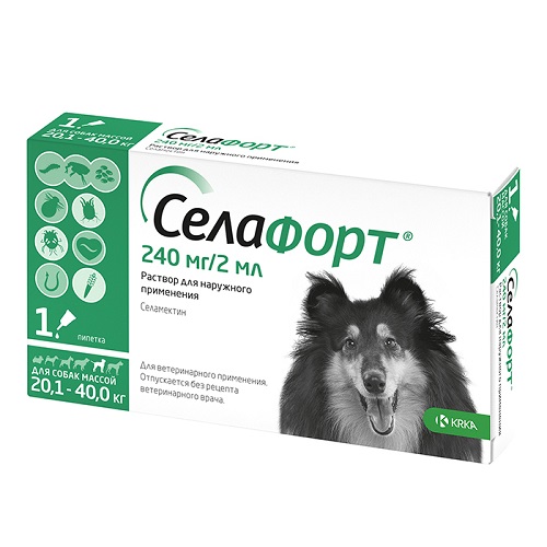 СЕЛАФОРТ 12% Капли от блох, клещей и гельминтов 240 мг для собак массой 20.1-40 кг, упак.1 пип.