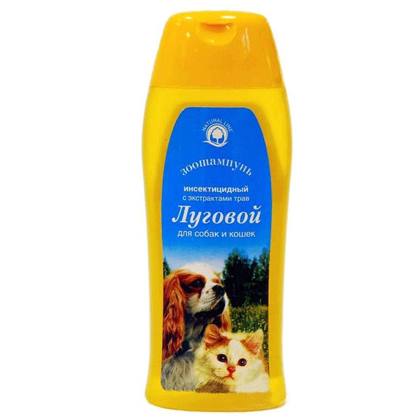 Зоошампунь инсектицидный «Луговой» применяют для обработки собак и кошек при энтомозах вызванных блохами, вшами и власоедами.
