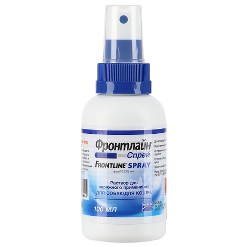 Фронтлайн спрей является инсектоакарицидным средством контактного действия, активен в отношении блох, вшей, власоедов и иксодовых клещей на всех стадиях развития. Фронтлайн спрей закрепляется на волосяном покрове, создавая, таким образом, ловушку для паразитов. Препарат поражает центральную нервную систему блох и клещей, при этом не оказывая влияния на ЦНС млекопитающих. ФРОНТЛАЙНОМ-СПРЕЕМ МОЖНО ОБРАБАТЫВАТЬ КОТЯТ И ЩЕНКОВ СО ДНЯ РОЖДЕНИЯ, А ТАКЖЕ КОШЕК И СУК ВО ВРЕМЯ БЕРЕМЕННОСТИ И ЛАКТАЦИИ. Препарат не оказывает кожно-резорбтивного, сенсибилизирующего действия, при попадании в глаза может вызвать раздражение.
