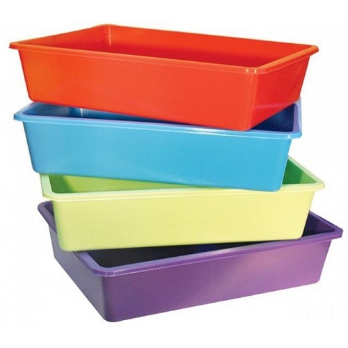 Высокие бортики препятствуют разбрасыванию наполнителя .