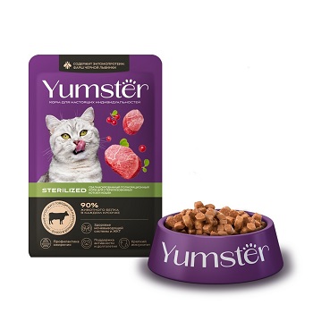 Стерилизованные кошки требуют особого питания, поддерживающего здоровье и красоту. Рецепты Yumster созданы с любовью экспертами по питанию животных – для удовольствия и долголетия Вашей кошки. Нежирная говядина с брусникой во вкуснейшем соусе – полезное наслаждение! Корм содержит фарш из свежей чёрной львинки. Это естественная и желанная пища пушистого хищника, источник множества полезных аминокислот и микроэлементов. Ямстер – богатство выбора и натуральная польза для Вашего питомца!