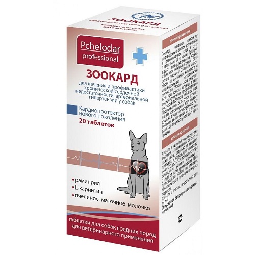 Зоокард таблетки назначают собакам при застойных явлениях, вызванных хронической сердечной недостаточности, при артериальной гипертензии, почечной недостаточности, кардиомиопатиях различного генеза, а также для профилактики ишемии миокарда (инфаркт, инсульт и т.д.). Препарат назначают для повышения выносливости к физическим нагрузкам и выживаемости у животных с врожденными пороками сердца.